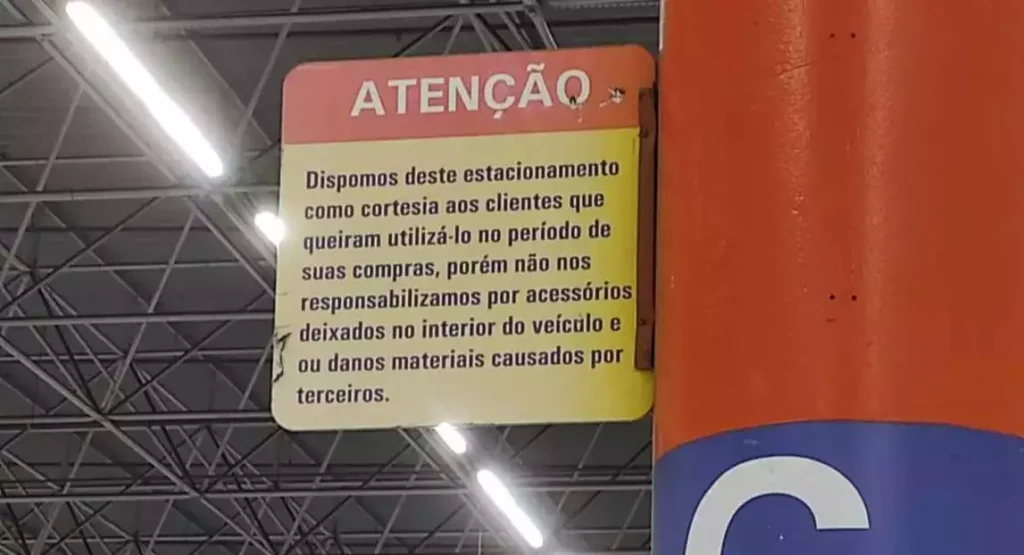 É corriqueiro que ao desfrutar de um estacionamento, seja ele em shopping center, supermercado ou qualquer estabelecimento, o consumidor se depare com a placa: “NÃO NOS RESPONSABILIZAMOS POR O OBJETOS DEIXADOS NO VEÍCULO“.